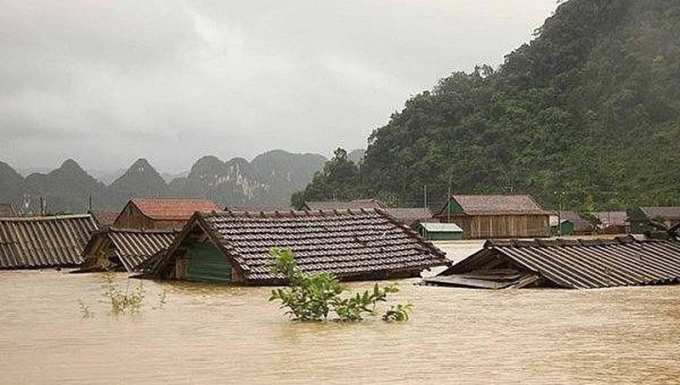 Những ngôi nhà chìm trong bão lũ ở miền Trung. Ảnh nguồn internet